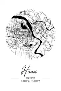 Affiche Carte Hanoi, un souvenir de la capitale Vietnamienne