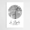 Cette affiche, c'est une carte de Los Angeles, toute en noir et blanc. Ce qui frappe tout de suite, c'est la clarté des lignes. Ça fait penser à un labyrinthe avec toutes ces rues qui se croisent. C'est un peu flou par moments, mais on devine la magie de cette ville. Ça sent un peu le voyage, les balades sous le soleil californien.