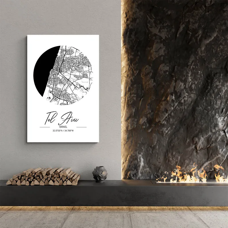 Le style minimaliste ici, c'est fort mais efficace. L'Affiche Carte Tel Aviv communique avec ses lignes claires. Découvrez comment ces choix peuvent embellir votre espace avec cet article sur la déco minimaliste.