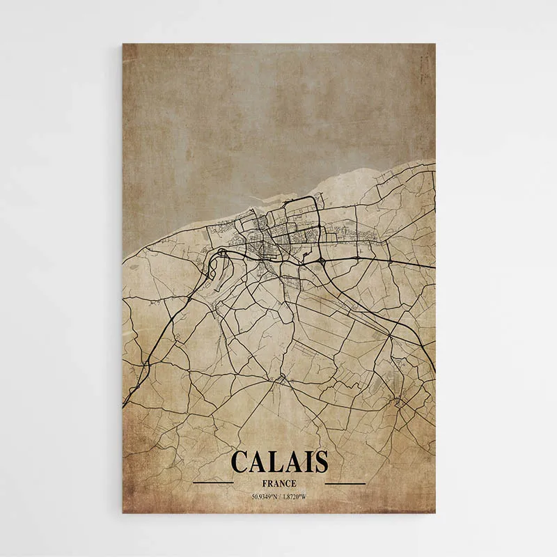 Affiche Carte Vintage Calais France : un petit bout d'histoire sur vos murs