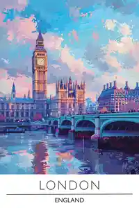 Ce que j'aime, c'est que ce n'est pas une vue cliché de Londres. Il y a quelque chose de poétique dans la manière dont Big Ben se détache du reste. On le sent là, solide, mais baigné dans une lumière presque rêveuse. On se croirait au petit matin, quand la ville dort encore un peu et qu'on est seul dans les rues. C'est ce genre de tableau qui donne envie de repartir en voyage rien qu'en le regardant.