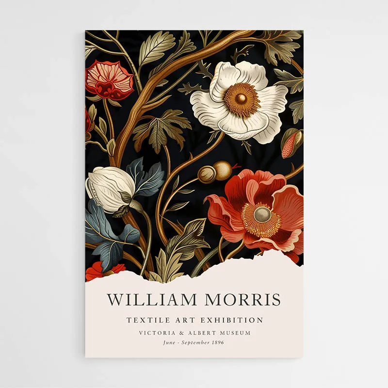 On ne peut pas parler de cette affiche sans dire deux mots sur William Morris lui-même. Ce créateur du XIXe siècle, c'était pas juste un artiste, c'était un amoureux du beau, du fait main, du détail. À ses yeux, l'art devait faire partie de la vie quotidienne. Et on sent encore cette philosophie dans ses œuvres, même aujourd'hui. Si vous êtes curieux, ce petit article sur le style Morris vous en dira plus. C'est passionnant.