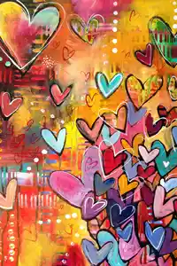 Ce tableau abstrait Street art mettra en avant votre amour pour le Street Art. Avec ses nombreux cœurs multicolores, ce tableau met en valeur à la fois le Street Art et l'amour. Une toile parfaite pour un couple.
