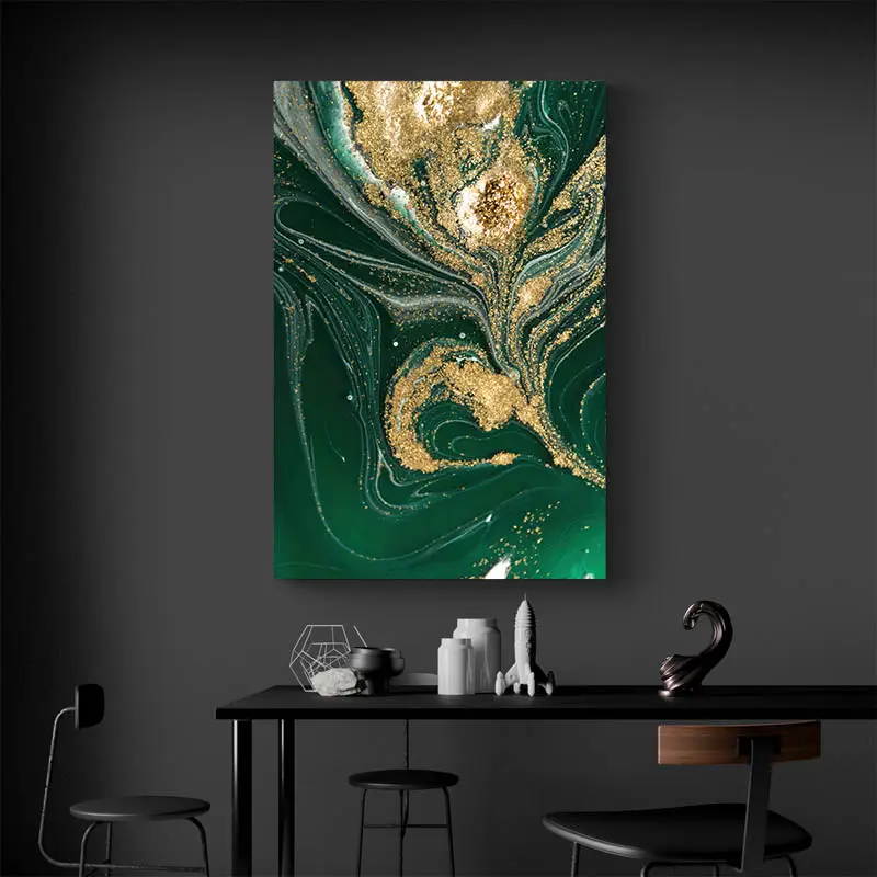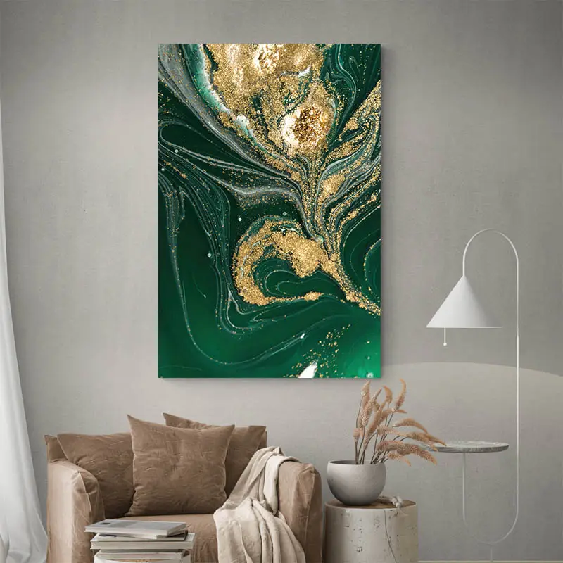 Ce tableau abstrait vert est une réalisation totalement dans le style abstrait notamment grâce à son aspect très aléatoire et ses nombreuses interprétations que nous pouvons avoir en le regardant. C’est un tableau abstrait vert qui s’adaptera plutôt à une décoration de style contemporaine. Il se mariera à la perfection avec vos objets déco contemporains et avec des accessoires dorés.