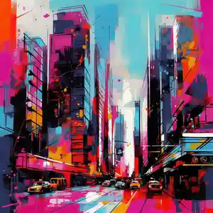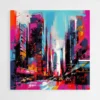Ce tableau abstrait ville, c'est comme une grande bouffée d'air citadin qui entre chez vous. On sent tout de suite le rythme, le mouvement, la vie d'une rue animée. Les gratte-ciel s'élèvent, les voitures filent, et les couleurs jaillissent dans tous les sens... On est en pleine effervescence.