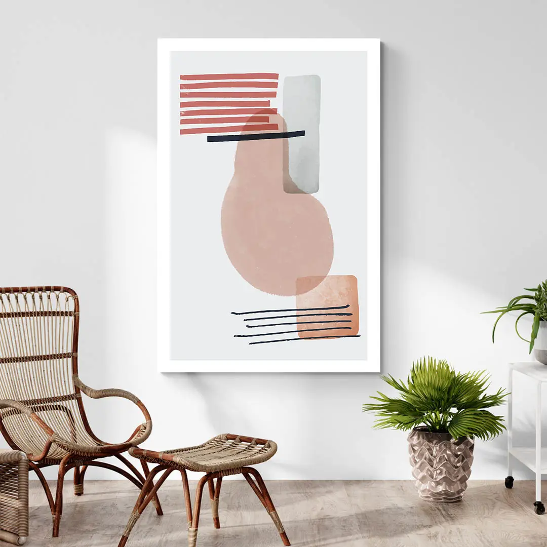 Les teintes beige, terre cuite et gris clair s’accordent à merveille. Cette œuvre s’intègre dans une déco moderne, scandinave ou japandi. Elle adoucit les murs tout en apportant une structure graphique. Pour un effet harmonieux, on peut l’associer à un tableau scandinave ou un tableau abstrait dans les mêmes tons.