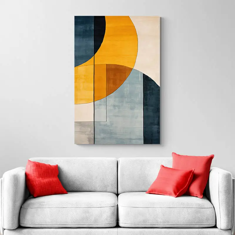 Je suis tombé sur ce Tableau Vertical Design un peu par hasard, et je dois dire... il m'a tout de suite fait quelque chose. Il n'y a rien de trop, rien d'exagéré. On n'y voit juste des formes simples comme, des cercles, des rectangles qui se répondent comme si tout était à sa place. C'est apaisant, vraiment.