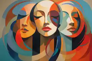 Ce qu'on adore ici, c'est la façon dont les formes géométriques sculptent les visages. Rien n'est trop net, tout est en mouvement, comme si la toile elle-même respirait. Et les couleurs ! Du rouge flamboyant, du turquoise lumineux, du jaune, du violet... c'est vif, mais jamais agressif. C'est vivant.