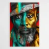 Dans cette expression artistique, les yeux sont des fenêtres vers une âme, racontant des récits de sagesse et de vécu profond. Le visage est sculpté dans des teintes d'or et de charbon, traversé par des coulées de couleur vive qui semblent capturer l'essence de la vie et de la vivacité africaines.
