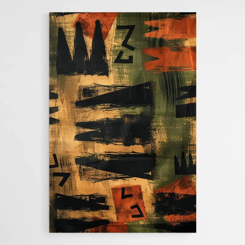 Le Tableau Africain Abstrait est un vibrant hommage à la richesse et à la diversité culturelle de l'Afrique, transposée en un langage visuel audacieux et moderne. Les couleurs terreuses s'entremêlent avec des motifs géométriques qui rappellent les symboles ancestraux, créant une œuvre pleine de vie et de dynamisme.