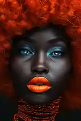 Ce tableau femme afro cheveux oranges, on ne peut pas passer à côté. Il attire le regard dès qu'on entre dans la pièce. Ce qu'on adore ici, c'est le contraste ultra puissant entre la chevelure orange flamboyante et la peau profonde et veloutée du visage. C'est à la fois audacieux, élégant et résolument moderne.