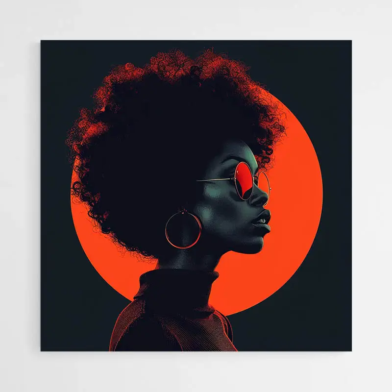 Tableau Femme Afro Rouge : Une Présence qui Rayonne