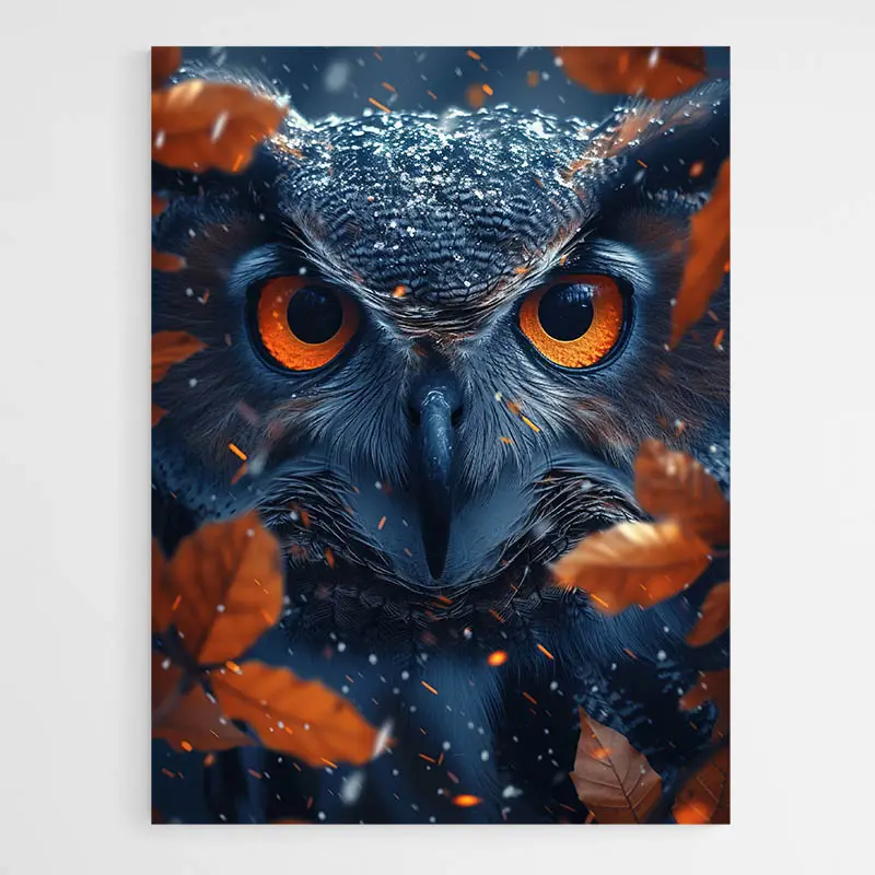 Tableau Hibou aux Yeux Oranges : Regard perçant et atmosphère envoûtante