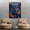 On trouve que ce tableau a toute sa place dans une pièce un peu sobre, avec des murs clairs ou naturels. Il suffit de quelques touches de bois brut, peut-être une lampe en métal vieilli, pour que tout prenne vie. Et si vous avez des coussins ou des accessoires dans les tons cuivrés ou orangés, c'est encore mieux, ça rappelle ce regard intense.