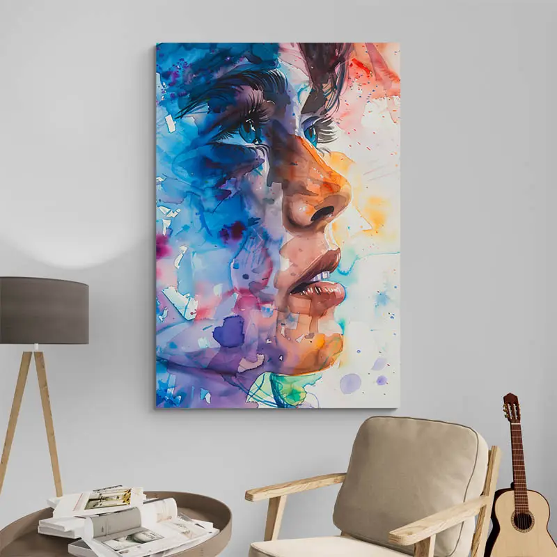 Ce tableau aquarelle femme nous a tout de suite parlé. Il y a une silhouette, oui, mais surtout une émotion. Le visage est suggéré, pas détaillé, et pourtant on sent une expression, une énergie, presque un souffle. C'est le genre de tableau qu'on ressent plus qu'on ne comprend. Et c'est ce qui le rend si touchant.