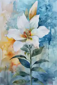 Ce tableau fleur aquarelle, c'est comme un bouquet discret posé au mur. La fleur est suggérée, les contours sont légers, comme portés par une brise. Les couleurs sont douces, jamais trop vives, et le fond reste sobre, pour laisser toute la place à cette nature fragile.