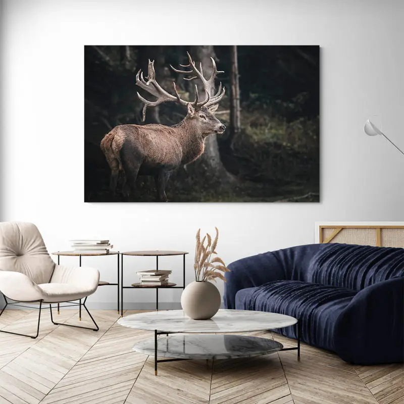 Ce qu'on remarque tout de suite, c'est le niveau de détail. On voit tout. La texture de sa fourrure, la rugosité de ses bois, même le calme dans son regard. Ce n'est pas juste une photo, c'est un moment volé à la nature, figé pour toujours. Et ce moment, on peut l'avoir chez soi.