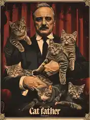Franchement, ce tableau Cat Father, on ne peut pas s'empêcher de sourire en le regardant. Il y a ce chat, costume impeccable, regard fier, assis comme un parrain du cinéma... mais version moustaches et coussin. On dirait presque qu'il s'apprête à donner des ordres depuis son fauteuil, mais avec classe et second degré.