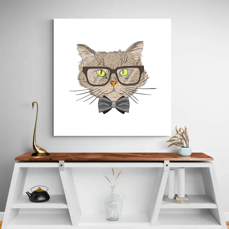 Les chats sont aimés dans le monde entier grâce à leur nature amicale et leur apparence adorable. Ils sont faciles à dessiner, car les enfants s'amusent à interpréter leur personnalité à travers la forme de leurs oreilles et d'autres caractéristiques. Ce tableau d'un chat en costume en est l'exemple parfait. Il représente un chat avec des accessoires humains comme ses lunettes ou encore son nœud papillon. Il dégage des émotions et une personnalité unique.