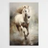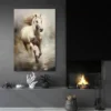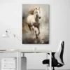 Ce tableau, il transforme la pièce. Au-dessus d'un canapé, dans un bureau, ou même dans une chambre, il change tout. Il capte l'attention, il donne de l'énergie. On aime le contraste entre le blanc éclatant du cheval et le fond flou, presque nuageux, qui ajoute de la légèreté.