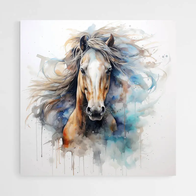 Le cheval est aussi un animal fortement symbolique, à travers cette peinture d'un cheval à l'aquarelle vous allez donc exprimer votre motivation et votre envie de vivre librement. Votre fougue et votre envie sauvage de liberté. Et enfin, vous pourrez exprimer les émotions fortes de vos désirs passionnés. Pour résumer, arborez fièrement ce cheval dans votre décoration murale pour insuffler vie et passion à votre salon, votre bureau ou votre chambre à coucher.
