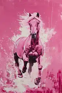 Ce tableau n'est pas juste une image; c'est une célébration de la liberté et de la beauté naturelle, transformée par une explosion de couleur qui défie les conventions. La dynamique de la composition et l'impact visuel du rose donnent vie à cette pièce, la rendant presque en mouvement sous vos yeux.