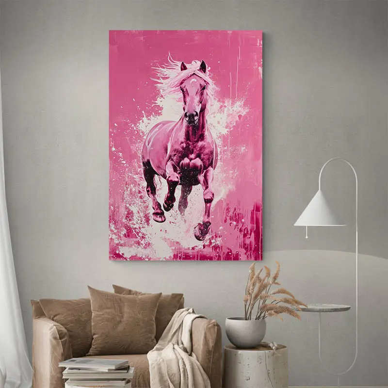 Que ce soit dans un salon audacieux, une chambre d'enfant ou un studio d'art, ce tableau apporte une touche de fantaisie contemporaine et de conversation artistique. Avec le Tableau Cheval Rose, invitez l'esprit ludique et la liberté d'expression dans votre environnement quotidien.