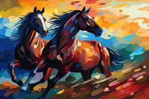 Ce tableau de chevaux stylisés est une jolie reproduction d'une peinture de chevaux sauvages. Cette création est avant tout artistique.