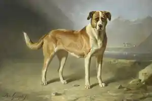 Ce tableau d'un chien en peinture est en réalité une reproduction de l'œuvre « A St Bernard Dog ' qui est une peinture à l'huile réalisée par l'artiste néerlandais Bernard te Gempt entre 1850 et 1879. C'était un spécialiste des peintures animalières et de nature morte. Cette peinture représente un Saint-Bernard l'un des chiens les plus imposants, notamment connus pour son rôle de sauveteur en montagne.