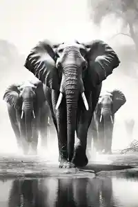 Tableau Éléphant Noir et Blanc, symbole de force tranquille et de majesté