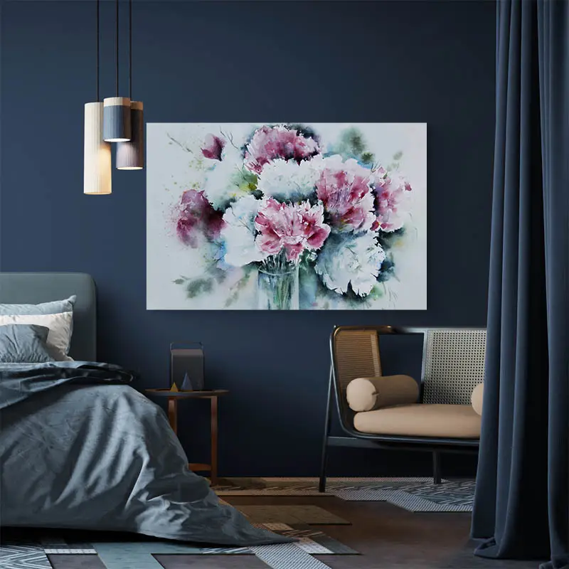 Le Tableau Bouquet de Pivoines, c'est une pièce qui apaise. Elle ira parfaitement dans une chambre douce, un coin lecture ou même un bureau. Partout où on a envie d'un peu de calme, d'un peu de beauté simple et vraie.