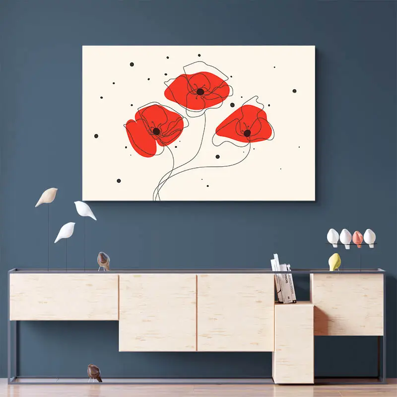 Le Tableau Coquelicots Moderne, c'est le genre de pièce qu'on peut facilement intégrer à n'importe quelle déco. Il apporte une touche de fraîcheur, un peu de poésie, mais aussi une vraie modernité. Il ira aussi bien dans une chambre calme que dans un salon lumineux ou un coin bureau.