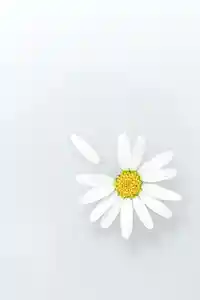 Ce qu'on aime ici, c'est la photographie minimaliste. Rien ne vient distraire le regard. Le fond blanc laisse toute la place à la fleur. Ses pétales blancs, son cœur jaune doré... et ce petit vide autour qui donne presque envie de souffler doucement pour ne pas tout déranger.