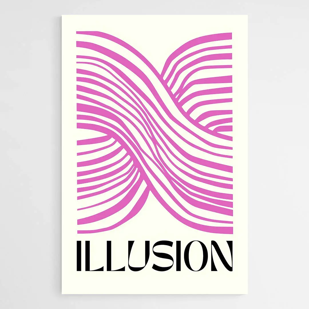 Ce qu’on aime dans le Tableau Illusion, c’est cette façon qu’il a de jouer avec la perception. Les lignes se croisent, se tordent et créent un effet de mouvement continu. C’est à la fois simple et fascinant. Le rose vif apporte une énergie moderne, tandis que le contraste avec le fond clair garde l’ensemble léger et lumineux.