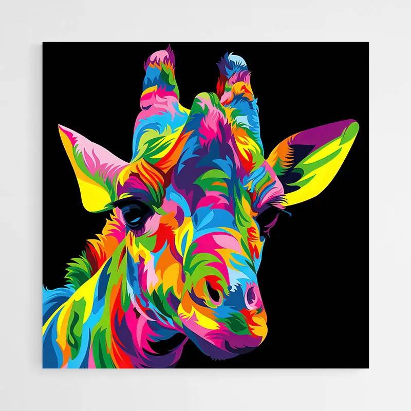 Submergez votre décoration de couleurs vives avec ce tableau de décoration girafe Pop Art. Une œuvre remplie de couleurs pastel, une tendance déco subsiste au fil des ans et qui accorde beaucoup de contemporanéité et de caractère a votre décoration d'intérieur.