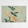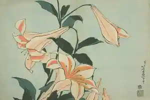 Quand on pense aux estampes japonaises comme celle-ci représentant des fleurs d'Hokusai. C'est souvent le même nom qui nous vient à l'esprit. Celui de ce célèbre peintre japonais. Aussi connu sous le nom de « vieux dessinateur fou '. Il a vécu pendant l'ère Edo. Longue période de l'histoire du Japon où les étrangers étaient interdits tout comme il était interdit de quitter le pays pour les locaux. Il était connu comme l'un des précurseurs du japonisme.