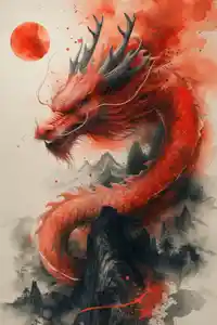 Le tableau dragon japonais, c'est bien plus qu'une image. C'est un souffle venu d'ailleurs, une incarnation de légendes anciennes. On y voit ce dragon majestueux, serpentant entre les montagnes embrumées, avec cette lune rouge sang qui éclaire la scène d'une lumière presque magique.