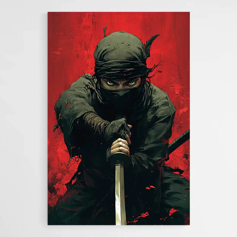 Ce Tableau Ninja et Katana, c'est comme une scène figée juste avant l'action. On sent le souffle coupé, l'instant suspendu. Le fond rouge, vibrant, brûlant presque, fait ressortir la silhouette sombre du ninja, concentré, ancré, le regard aussi tranchant que son katana. Ce n'est pas juste un tableau, c'est une énergie contenue, prête à éclater.