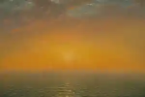 Il faut avouer que ce tableau a quelque chose de très apaisant. Il s'agit d'une reproduction du magnifique "Sunset on the Sea", peint en 1872 par John Frederick Kensett, un artiste américain qu'on connaît pour ses paysages tout en douceur. Et ici, franchement, on est servi. Ce coucher de soleil sur l'océan, c'est comme une respiration lente. On se sent tout de suite plus calme.