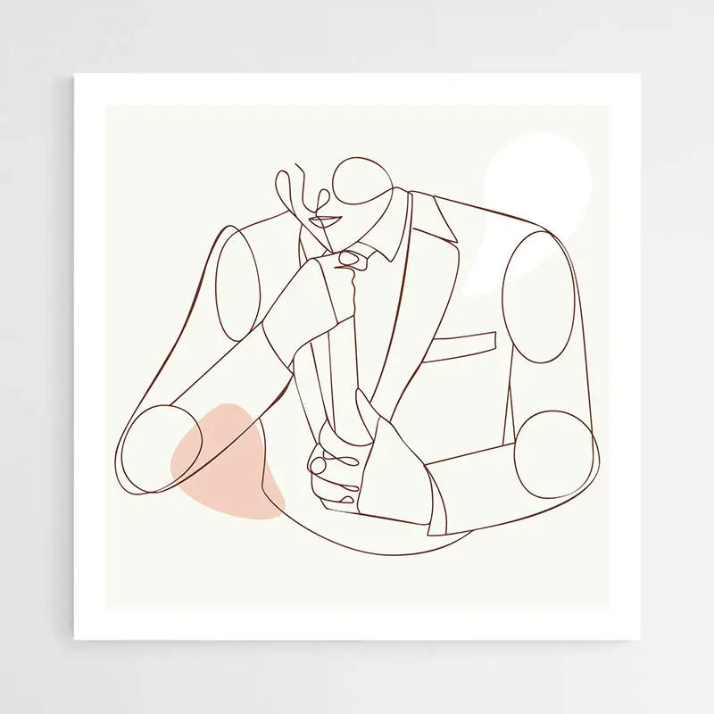 Décorez votre salon ou votre bureau avec classe grâce à ce dessin d'un homme minimaliste aux couleurs sobres et apaisantes. Une toile parfaite pour booster votre productivité.