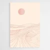 Ce dessin minimaliste simple représente un paysage abstrait sous un soleil brillant. Le style du minimalisme est parfaitement représenté sur cette toile.