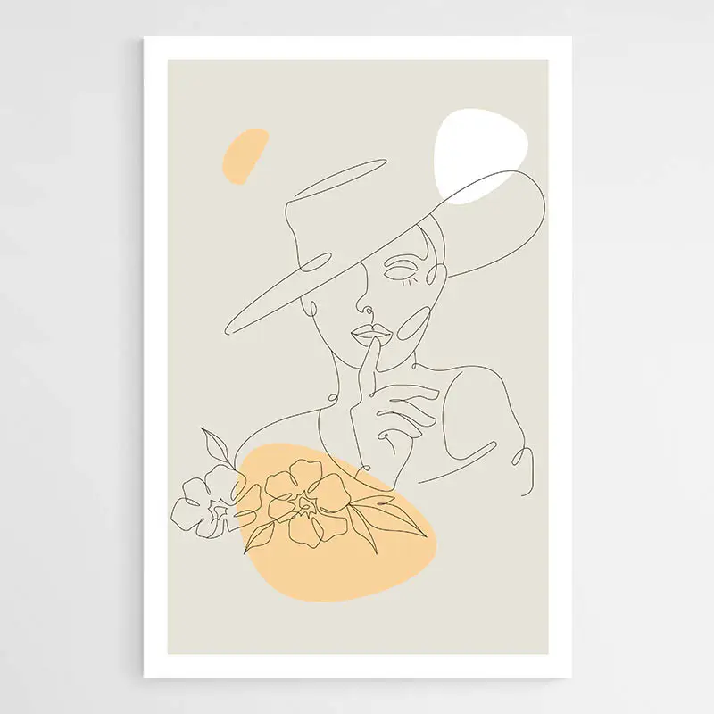 Cette toile représente l'élégance de la femme à l'état pur, nous pouvons y observer le dessin d'un visage d'une femme et de son chapeau avec ces couleurs sobres qui s'intégreront à merveille dans une décoration moderne ou scandinave.