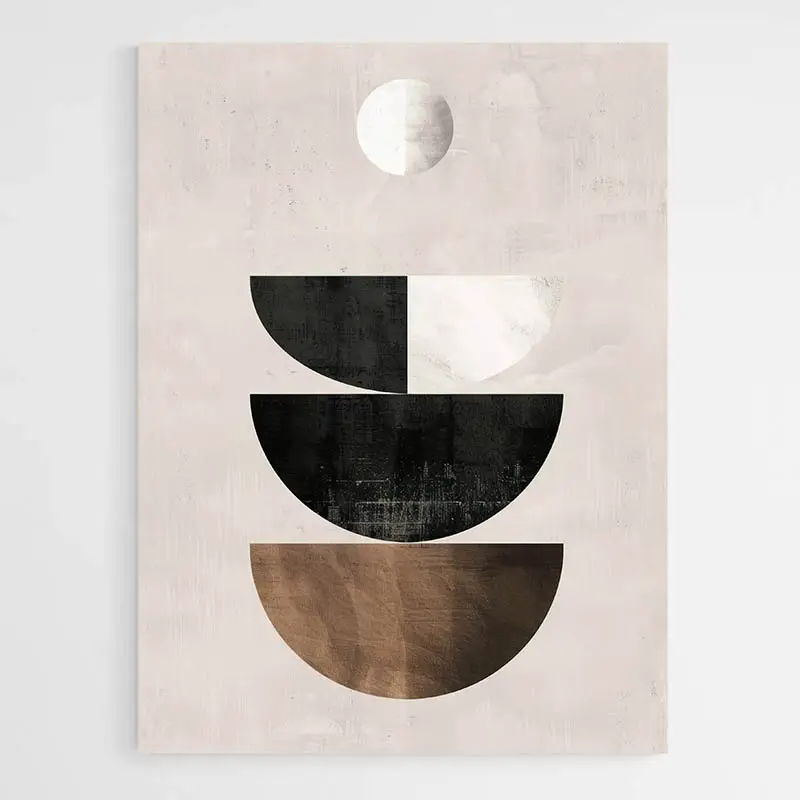 Avec ses teintes neutres et ses formes géométriques douces, ce tableau se fond parfaitement dans des espaces de style minimaliste ou moderne. Il apporte une touche graphique subtile sans surcharger visuellement l'espace, idéal pour ceux qui apprécient la simplicité dans leur décoration. Ce tableau géométrique convient bien aux pièces à vivre lumineuses ou aux chambres paisibles.