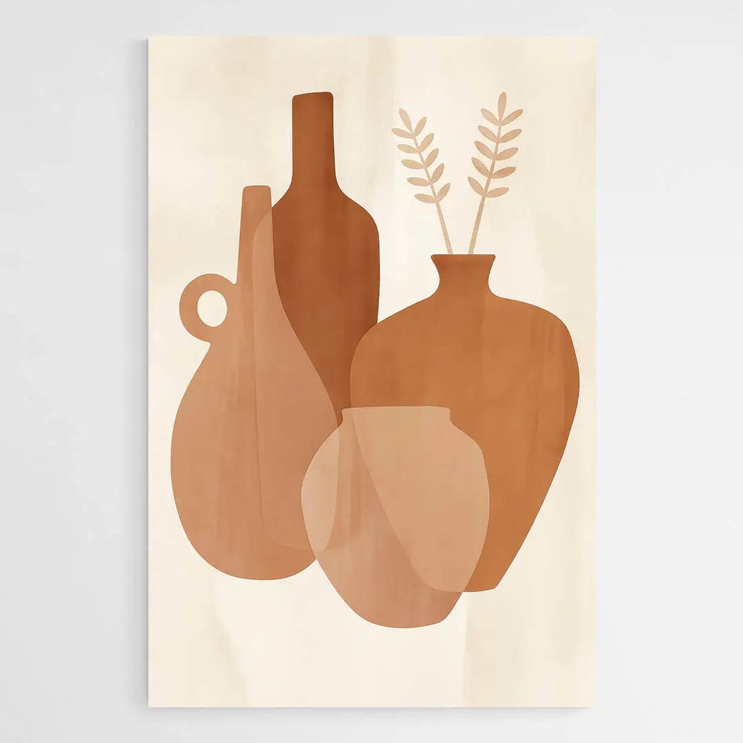 Le tableau nature morte terracotta incarne l’élégance minimaliste avec une palette de tons chauds et terreux. Cette composition de vases stylisés et de formes organiques évoque à la fois la simplicité artisanale et le raffinement bohème. Parfait pour insuffler une atmosphère douce et naturelle dans votre intérieur, ce tableau crée un sentiment immédiat de calme et de sérénité.