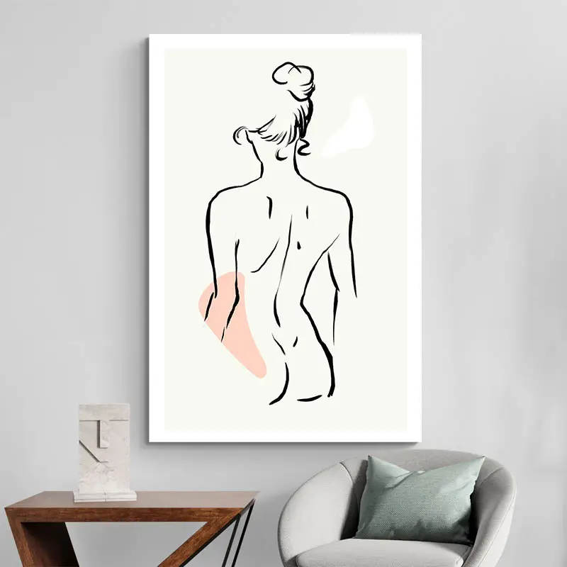 Avec ce tableau d'une silhouette d'une femme, l'artiste a ici voulu souligner l'élégance et la beauté du corps féminin de façon simple avec un style minimaliste. Les bords durs, les couleurs unies et douces, l'absence de fioritures et les formes arrondies et géométriques sont toutes des caractéristiques d'un art minimaliste réussi. En parlant de couleurs douces, elles permettront à ce tableau de s'adapter à tout type pièce. Salon, Chambre, bureau, mur clair ou foncé. Peu importe, ce tableau se fondra dans votre décoration d'intérieur.