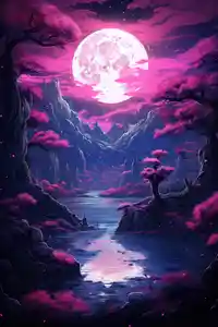 Ce Tableau Paysage Lac, je pourrais le contempler pendant des heures. Je trouve qu'il dégage quelque chose d'apaisant. La lune brille doucement au-dessus de l'eau, comme si elle éclairait nos pensées les plus calmes. On est plongé dans un décor presque magique, un peu hors du temps.