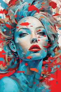 Ce tableau portrait femme moderne, c'est le genre d'œuvre qui ne passe pas inaperçue. Dès qu'on le voit, on est happé par le regard. Le visage est là, plein de caractère, baigné dans des teintes bleu profond et rouge éclatant. Il y a une vraie force qui s'en dégage. On sent à la fois l'assurance et la douceur. C'est étonnant, mais ça fonctionne à merveille.