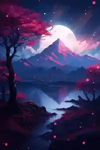 Le tableau Style Montagne, c'est un moment suspendu entre ciel et terre. Un paysage calme, presque irréel, où les sommets découpent doucement l'horizon sous un ciel étoilé teinté de rose, de bleu et de violet. Ces couleurs douces donnent à la scène un air de rêve, comme si le temps ralentissait. On sent le silence, la fraîcheur de la nuit, et ce sentiment d'être tout petit face à la nature.