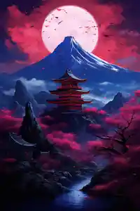 Le Tableau Thème Montagne, c'est un peu comme ouvrir la fenêtre sur un autre monde. Un paysage à couper le souffle, où les montagnes se découpent en ombre sous un ciel violet-bleu, vibrant, presque magique. Au centre, un soleil éclatant inonde tout de lumière douce, et des touches de fleurs roses viennent doucement réveiller la scène. C'est calme, lumineux, un peu féerique aussi, c'est un tableau qui apaise autant qu'il émerveille.