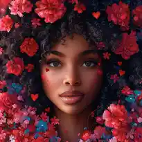 Ce qu'on ressent avec ce tableau visage femme fleurs rouges, c'est une vraie sensation de douceur et de force mêlées. Le visage est paisible, presque en pause, et tout autour, ces fleurs rouges vives qui viennent comme envelopper la scène. C'est à la fois poétique, sensuel et un peu mystérieux. Un tableau qui ne se contente pas d'être joli, il raconte quelque chose.